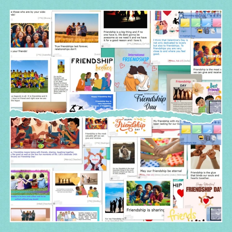 Okulumuz İngilizce öğretmeni Hilal Dinçkal rehberliğinde yürütülen "Sparks of Genius :Inventors and How They Shaped the World" eTwinning projesinin Şubat ayı etkinliği olarak öğrencilerimiz "14 Şubat Arkadaşlık Günü" ni kutlamak için "Canva" Web 2.0 aracını kullanarak kartlar oluşturup, proje paylaşım sayfamızda yer alan "Lino.it" dijital panosuna arkadaşlık günü mesajları ile kartlarını eklemişlerdir.